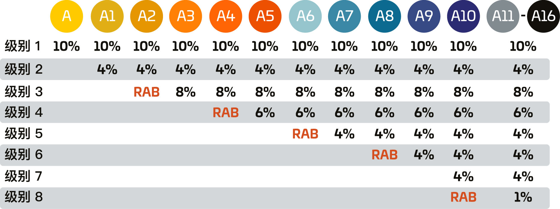 在第一年内达成 A11 的付费等级,并连续两个月维持至少 A11 等级,即可获得全球可计酬销售额 1% 的分红份额。